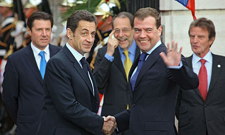 French president Nicolas Sarkozy shakes hands with Russian president Dmitry Medvedev. Photograph: Vladimir Rodionov/EPA President Nicolas Sarkozy of France joined Russia in condemning the Pentagon's plans to install missile defence bases in central Europe yesterday and backed President Dmitri Medvedev's previously ignored calls for a new pan-European security pact. Both presidents concluded a Russia-EU summit, in Nice in the south ofFrance, with an agreement to convene a major international conference next summer at which the Americans, Russians and the 27 countries of the EU should come up with a blueprint for new post-cold war "security architecture" in Europe. The call for such a pact has been Medvedev's central foreign policy message since he succeeded Vladimir Putin as president earlier this year. Medvedev has called for the new deal in several keynote speeches but has been snubbed by western leaders until Sarkozy delivered a characteristic surprise yesterday, appearing to hijack the subject. Sarkozy said: "We could meet in mid-2009 to lay the foundations of what could possibly be a future pan-European security system." The Russians see such a deal as a way of halting Nato enlargement and stopping the controversial US missile defence projects in Poland and the Czech Republic. While western European leaders are lukewarm about the Pentagon project and president-elect Barack Obama has yet to reveal his policies, Sarkozy went further yesterday, branding the project a setback for European security. "Deployment of a missile defence system would bring nothing to security in Europe. It would complicate things," said the French leader, who currently chairs the EU. As he attacked the plan, Czech and Polish ministers met in Prague to affirm their support for the installations and send a signal to the Obama administration, pleading for it to go ahead. "I'm 100 per cent sure that Obama won't kill missile defence," Alexandr Vondra, the Czech deputy prime minister, told the Guardian. "The European pillar of missile defence is in the interests of everyone who wants to keep Nato strong." The French alignment with Russian aims will upset pro-US leaders in western and eastern Europe, but will enjoy support in Germany and Italy, which are eager to draw Russia in as a partner despite the recent invasion of Georgia. Yesterday's summit ordered the resumptions of negotiations on a new strategic pact governing relations between Russia and Europe - talks that the EU called off in protest at Russia's invasion of Georgia in August. In September the Europeans set Moscow an ultimatum for re-opening the talks, demanding that Russian troop positions and numbers be returned to the pre-conflict levels. Russia has ignored the European terms. But yesterday's summit glossed over that. "It's as if the military intervention in Georgia never happened. The EU is sending a dangerous signal of weakness," said David Clark, chair of the Russia Foundation, who was an adviser to the former British foreign secretary Robin Cook.Sarkozy backs Russian calls for pan-European security pact
