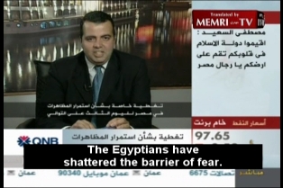 The following is research published today from MEMRI’s Special Dispatch Series, the MEMRI TV Project, and the Jihad and Terrorism Threat Monitor. Now you can embed MEMRI TV clips right to your personal blog. To do so just copy and paste our embed link on the clips page. Special Dispatch No. 3547—Egypt Following are excerpts from an address by Mustafa Al-Naggar, coordinator of Mohamed ElBaradei's National Coalition for Change, which aired on Al-Jazeera TV on January 27, 2011. To view this clip on MEMRI TV, visit http://www.memritv.org/clip/en/0/0/0/0/0/0/2783.htm. Mustafa Al-Naggar: "The Egyptians have shattered the barrier of fear. There is nothing for them to be afraid of anymore. That's it. They have broken our bones, and opened fire on us, piercing our bodies with bullets. This did not and will not stop us." To read the full report, visit http://www.memri.org/report/en/0/0/0/0/0/0/4959.htm. MEMRI TV Clip No. 2780 - Egyptian Uprising: Egyptian Opposition Leader Mohamed ElBaradei at Tahrir Square: "The Regime Must Go, and a New Phase Must Begin" Following are excerpts from an address by Egyptian opposition leader Mohamed ElBaradei, former director-general of the IAEA, delivered at Cairo's Tahrir Square. The address aired on Al-Jazeera TV on January 30, 2011. To view this clip on MEMRI TV, visit http://www.memritv.org/clip/en/0/0/0/0/0/0/2780.htm. MEMRI TV Clip No. 2778 - Egyptian Uprising: Egyptian TV Hosts Slam Government, Demand that Mubarak Appear on TV Following are excerpts from statements by Egyptian TV hosts Hanaa Al-Samari and Sayyed Ali, which aired on Al-Mihwar TV on January 21, 2011. To view this clip on MEMRI TV, visit http://www.memritv.org/clip/en/0/0/0/0/0/0/2778.htm. MEMRI TV Clip No. 2782 - Egyptian Uprising: Egyptian Business Tycoon Naguib Sawiris Slams Al-Jazeera TV for Accusing Him of Fleeing Egypt for Cyprus Following are excerpts from an interview with Egyptian business tycoon Naguib Sawiris, who denies allegations by Al-Jazeera TV that he had fled the country. The interview aired on ON TV on January 30, 2011. To view this clip on MEMRI TV, visit http://www.memritv.org/clip/en/0/0/0/0/0/0/2782.htm. MEMRI TV Clip No. 2781 - Egyptian Uprising: Egyptian TV Host Rim Majed: "Can Anyone Actually Tell Me of Someone Who Got Killed?" Following are excerpts from statements by Egyptian TV host Rim Majed, which aired on ON TV on January 30, 2011. To view this clip on MEMRI TV, visit http://www.memritv.org/clip/en/0/0/0/0/0/0/2781.htm. MEMRI TV Clip No. 2779 - Egyptian Uprising: Egyptian Cleric Muhammad Hassan, at Cairo's Tahrir Square: I Forbid Any Officer to Shoot a Live Bullet at Our Defenseless Youth Following are excerpts from an interview with Egyptian cleric Muhammad Hassan, given at Cairo's Tahrir Square, which aired on Al-Arabiya TV on January 30, 2011. To view this clip on MEMRI TV, visit http://www.memritv.org/clip/en/0/0/0/0/0/0/2779.htm. Salafist Palestinian Prisoners Who Escaped from Abu Za'abal in Egypt Prison Make Their Way to Gaza On January 30, 2011, the Islamist website Muslm.net, citing 'Imad Al-Sayyid, a spokesman for families of Palestinian prisoners in Egypt, reported that eight Palestinian prisoners had successfully escaped from the Abu Za'abal prison yesterday (January 29, 2011), and were now attempting to reach the Gaza Strip. To read the full report, visit http://www.memrijttm.org/content/en/blog_personal.htm?id=4363¶m=GJN. Special Dispatch No. 3546 - Prominent Salafi-Jihadist Cleric on the Situation in Egypt: We are on the Verge of an Historic Stage in the History of the Islamic Nation; Toppling the Egyptian Regime – an Earthquake Similar to 9/11 In a new fatwa published on the Salafi-jihadi website Minbar Al-Tawhid Wal Jihad, prominent Salafi-jihadist cleric Abu Mundhir Al-Shinqiti rules that participation in the protests in Egypt is permissible and recommended, since they might bring about the fall of the current Egyptian regime. To read the full report, visit http://www.memrijttm.org/content/en/report.htm?report=4958¶m=GJN. To view these reports, you must be a paying member of the Jihad and Terrorism Threat Monitor Project (JTTM). For membership information, send an email to jttmsubs@memri.org with "Membership" in the subject line.