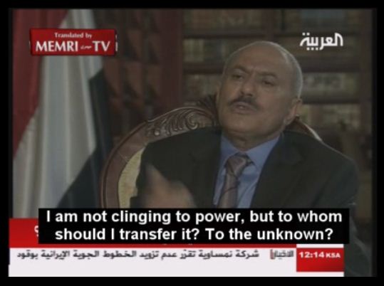 Ali Abdallah Saleh: "I am not clinging to power, but to whom should I transfer it? To the unknown? They are constantly seeking the unknown. They want to get rid of the regime…" To read the full report, visit http://www.memri.org/report/en/0/0/0/0/0/0/5141.htm.