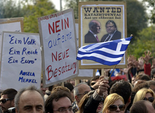 UPDATE: Caught unawares by his high-risk gamble, says The Irish Times, Merkel and Sarkozy have summoned Papandreou to crisis talks in Cannes tomorrow. They will push for a quick implementation of the bailout deal ahead of the G20 summit. And the Athens Stock Exchange has suffered its biggest daily drop since October 2008, with the general index shedding 7.7 percent.